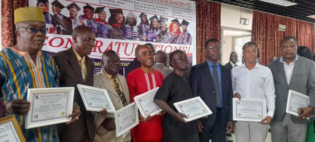 Meanwhile, the certificates of Recognition, Honors, and Appreciation were presented to the honorees by several distinguished personalities. They are Prof. Dr. Julius Julukon Sarwolo Nelson, President pf the University of Liberia, Prof. Dr. Moses M. Zinnah, Vice President for Academic Affairs; Mrs. Benetta Joko Tarr, Vice President for Administration, Prof. Stephen M. Jubwe, Associate Vice President for Academic Affairs, Honorable Numene Bartekwa, Grand Kru County Senator and Prof.  Dr. Herman Beseah Browne, Former President of Cuttington University, Priest in Charge, St. Stephen’s Episcopal Parish and Former Dean of Trinity Cathedral, Monrovia. He delivered the keynote address at the honoring program on Tuesday, 6 June 2023.